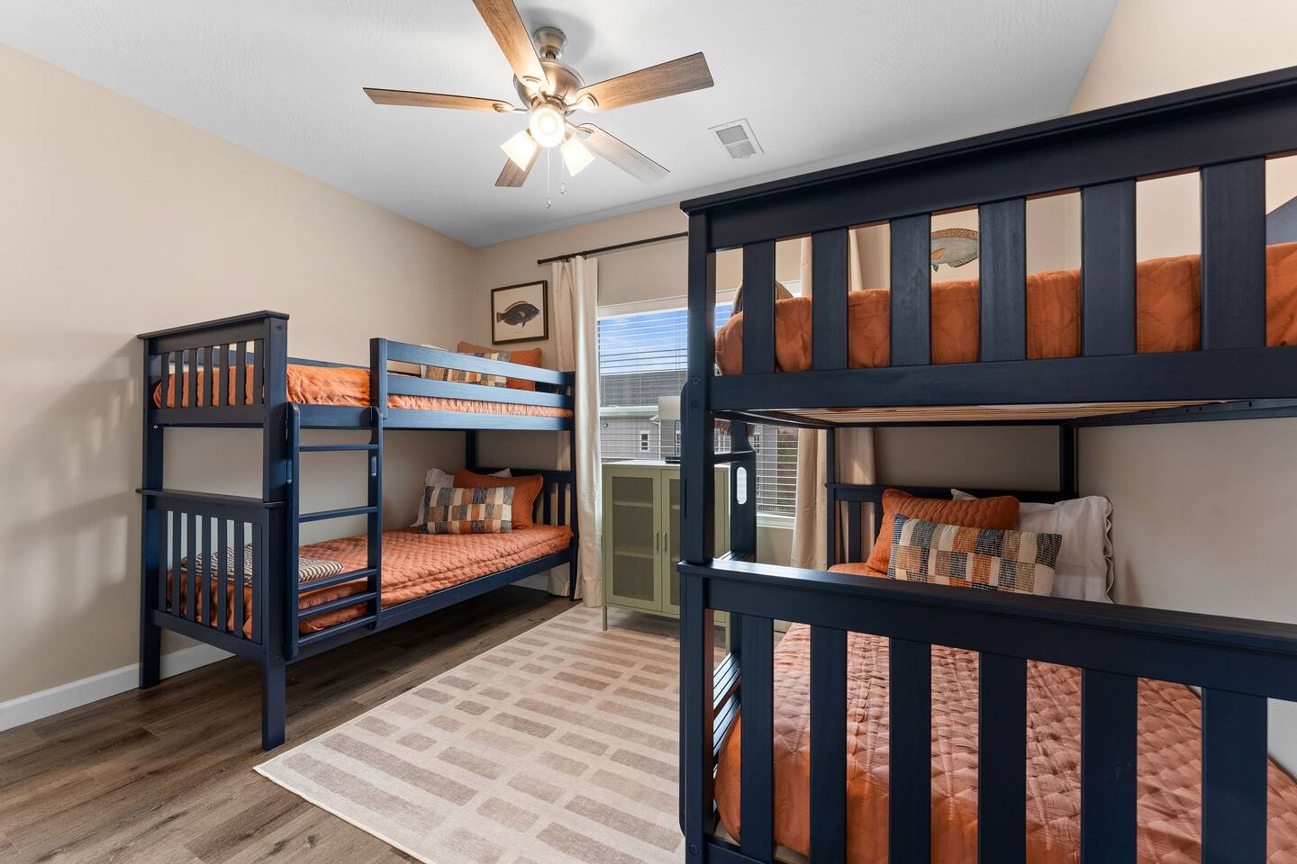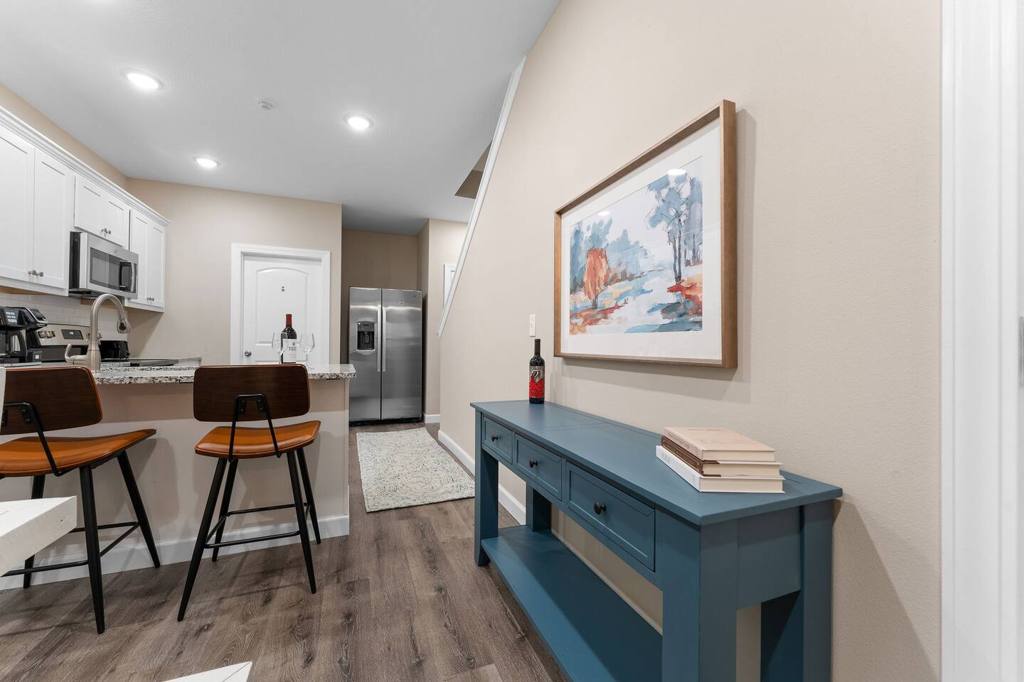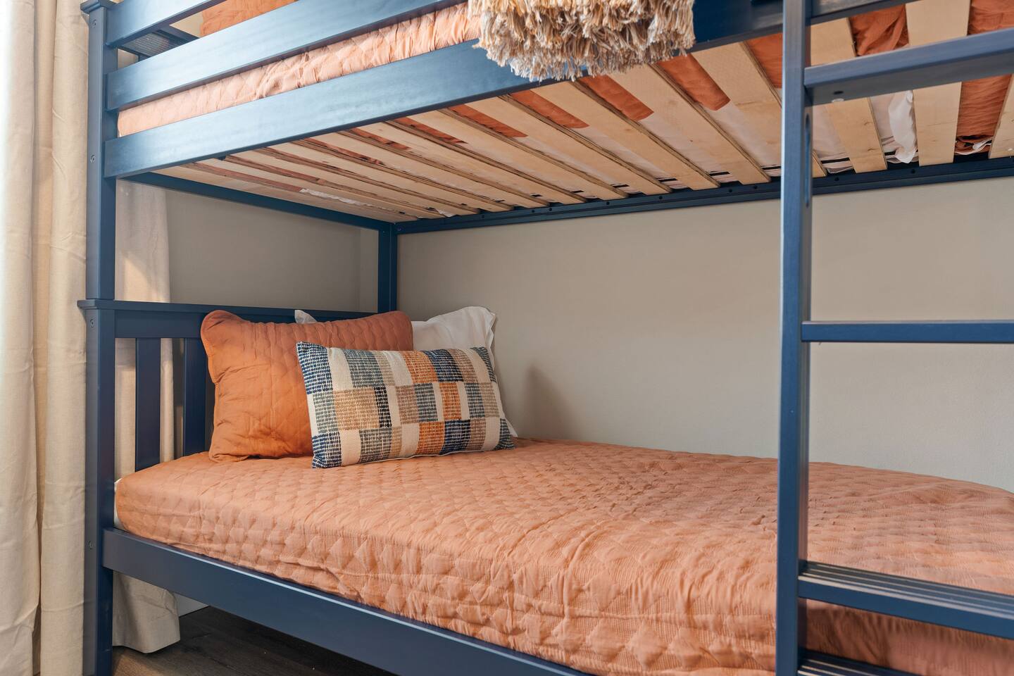 Escape to the perfect Branson retreat in this spacious 4-bedroom, 3-bathroom condo! Ideal for families or groups. Open year-round, this vacation home is a cozy and inviting haven, perfect for rest and relaxation. Nestled in a prime Branson location, this condo is a quick drive to top attractions like Silver Dollar City, the lively 76 Strip, and scenic Table Rock Lake. Enjoy an amazing vacation filled with adventure, relaxation, and unforgettable memories in a beautiful setting. Our cozy and stylish condo is located upstairs in a peaceful complex, offering great views and a relaxing stay. Just something to keep in mind when packing your bags! Relax in our cozy cabin, featuring a smart keypad (keyless entry), smart TVs, and a peaceful environment for ultimate relaxation. Whether you’re here for adventure or relaxation, this vacation home offers the best of both worlds for an unforgettable stay! We are dog-friendly, we know your family isn't complete without your best friend 🐕 ⍟Living Room » Comfortable seating with a spacious layout perfect for family gatherings » Smart TV for streaming your favorite shows and movies » Access to the deck, ideal for enjoying fresh air and relaxation ⍟Kitchen » Fully stocked with dinnerware, cookware, and all the essentials to prepare meals with ease » Modern appliances, including a refrigerator, oven, microwave, dishwasher, and coffee maker ⍟ Dining Room » Large dining table with seating for the whole group, perfect for shared meals or game nights » Additional bar seating for a relaxed dining experience » Beautifully set up to make mealtime a memorable part of your stay ⍟ Master Bedroom (main level) » King-size bed with high-quality linens for a restful sleep » Ensuite bathroom featuring a walk-in shower for added privacy and convenience » Smart TV for cozy, in-room entertainment » A desk with a monitor to hook up for those that need to do some work while visiting. » Lock on Bedroom Door ⍟ Upstairs King Bedroom (upstairs) » King-size bed in a spacious, inviting room with its own bathroom. » Smart TV, perfect for winding down after a day of exploring Branson ⍟ Queen Bedroom (main level) » Queen-size bed with plush bedding for a comfortable stay » Ample closet space to store all your essentials ⍟ Bunk Room (main level) » Twin-over-twin bunk beds, sleeping a total of four guests » Smart TV for entertaining the kids or a movie night » Fun and functional layout perfect for kids or young-at-heart guests ⍟ Bathrooms » Master ensuite with walk-in shower » Two additional bathrooms, each with a shower/tub combo for added flexibility (One upstairs, one downstairs) ⍟ Game Room (Upstairs) » Foosball table for family tournaments » Arcade game console, adding a fun, retro touch to your stay » Plenty of space for games, puzzles, and family entertainment ⍟ Work Space » Desk with a monitor set up for remote workers » Quiet, comfortable spot to get work done if needed ⍟ Patio » Outdoor seating, perfect for enjoying a morning coffee or evening chat » A relaxing extension of your living space with views of the surrounding area ⍟ Complex Amenities » Shared pool for a refreshing dip on warm days - open during warmer months. » Picnic tables for outdoor dining and socializing ⍟ Centrally located near Branson’s top attractions: Silver Dollar City, the 76 Strip, and Table Rock Lake. You are 5-15 minutes from just about everything! ■ Silver Dollar City - 5.4 miles ■ Branson 76 Strip - 4.5 miles ■ Table Rock Lake State Park - 5.6 miles ■ Branson Landing - 8 miles ■ White Water - 2.8 miles ■ IMAX Entertainment Complex - 2.3 miles ■ Titanic Museum - 3.5 miles ■ Hollywood Wax Museum - 3.6 miles ■ Showboat Branson Belle - 4.6 miles to Table Rock Lake for dinner cruises and live shows ■ The Butterfly Palace & Rainforest Adventure - 2.4 miles Book Now! We would love to host you :) Guests have access to the entire home. ◈ No amplified sound is permitted at any time. ◈ Max overnight occupants 10. ◈ You must be 21 years or older to book this property. ◈ We welcome friendly, house-trained dogs that are identified on the reservation at booking. Any unregistered pets will result in additional fees to pay for additional cleaning. ◈ Quiet hours are from 10PM - 8AM ◈ This condo is smoking/vaping free, even on the patio. Additional cleaning fees apply if evidence of smoke is found. ◈ No illegal substances allowed. Nonadherence to this policy will result in immediate eviction and addition cleaning fees. ◈ There is a doorbell camera at the front door that is active and records. After booking, please see the house rules in further detail.